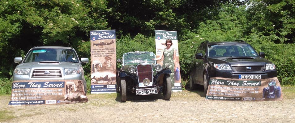 with her back-up vehicles and our excellent new promotional banners by ABC Print of Hereford.