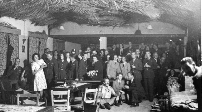 ‘The night before there had been an ENSA show, and many of the members stayed on for it. Together with the wrens, this made around seventy guests in all, and the biggest Squadron party ever. As before, after helping to decorate the Mess, I drove over to Alexandria with Jack Barnes and collected some of the wrens from the Sacre Coeur in Alexandria. It was a splendid evening. There had been a lot of rain over the previous weeks, so a large marquee was erected, and there was a huge bonfire outside. Once again the RAF Dance Band from Aboukir played for us. As midnight was counted down, Doc MacDonald made a dramatic entrance through the front door of the Mess dressed as an ancient old man, representing 1943, and was booed and heckled as he made his way through the crowded room and out at the back door. He was in fact the oldest member of the Squadron and, as it happened, I was the youngest. I therefore landed the job of representing the New Year, 1944, and, as the Doc exited bang on midnight, a flaming punch was served, and in I came, dressed as a baby with sheets for a nappy, and cheered to the nines. Not my finest hour, and no one from ENSA took my details for future bookings, but great fun all the same. We just about managed to squeeze everyone into a huge circle to sing Auld Lang Syne. It was 1.30 in the morning when Jack Barnes and I took our three wrens back into Alex. As Jack snoozed on the way home, I reflected on a year full of strange and powerful experiences. As I turned the car into the camp at 3.30 a.m., I knew that despite all the difficult things I had seen and been through, I was actually having the time of my life.’