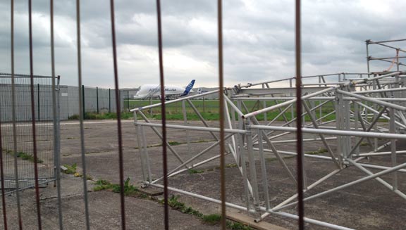 Now I stood on the side of the runway space where that exciting event in his life took place. Every airfield, I am discovering, has its own atmosphere, and this is no exception. The sense is of an industrial-scale site, where the wide runway leans upwards insistently towards the horizon. Concorde stands to the left at the far end, nose pointed to the runway like a silent sentinel, and on the sloping hill to the left of that, and running all the way in parallel to the runway, is the Airbus production site with its huge factory sheds both old and modern. Opposite me in the distance, across the wide expanse of the airfield proper, are some large old hangars, one of which is to be preserved to house the Bristol Aero Collection. Next to it a new building is to be erected to house Concorde.